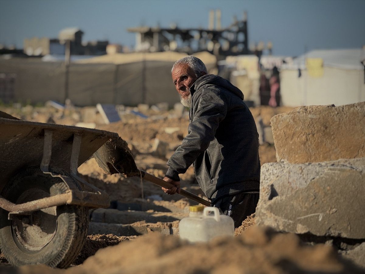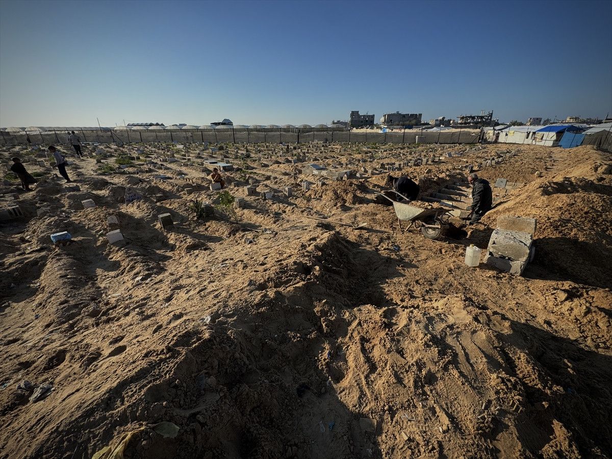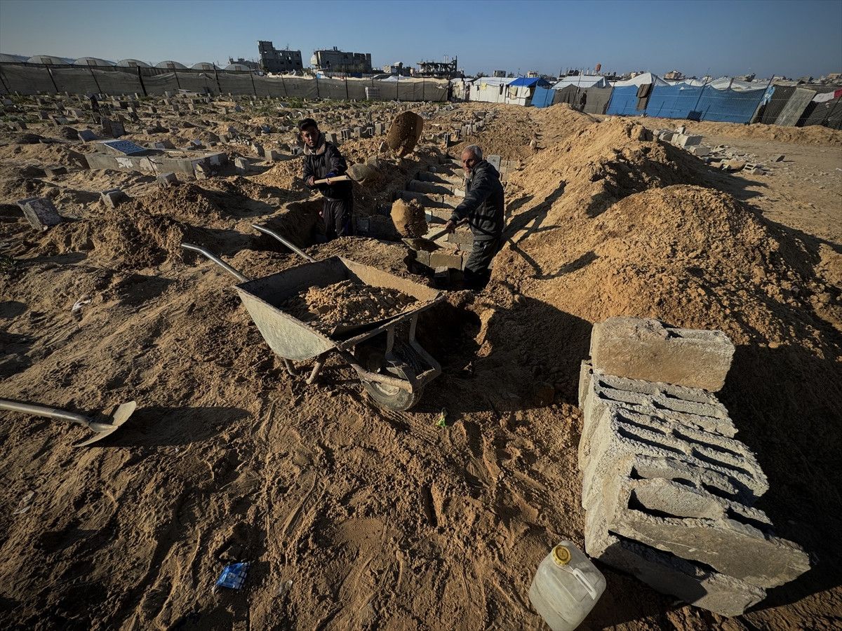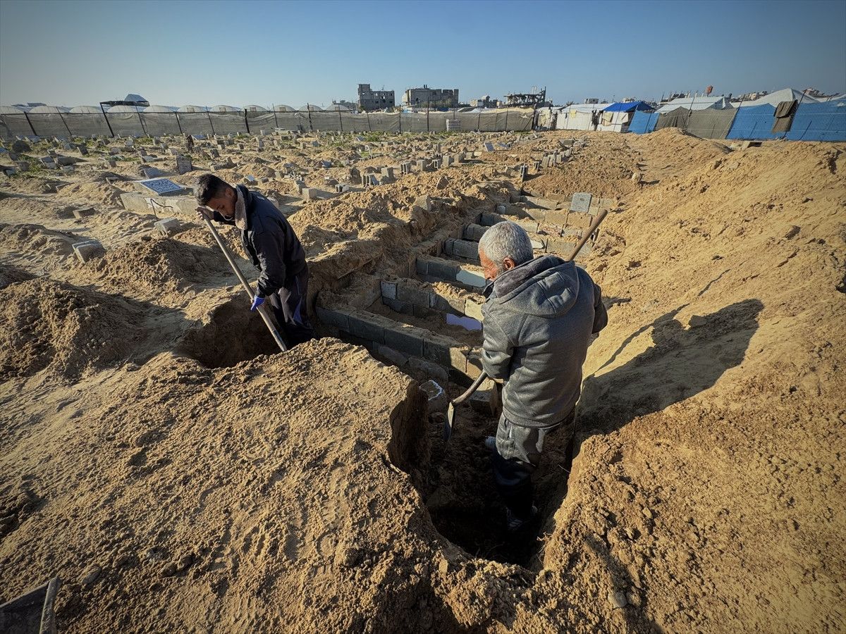 Han Yunus’ta son 2 yılda oğlu ve kardeşi dahil yaklaşık 18 bin kişiyi toprağa veren 65 yaşındaki mezarcı Yusuf Ebu Hatab, “Ruh halimi nasıl anlatayım. Hâlâ akıl sağlığımın yerinde olduğuna şükrediyorum” dedi.